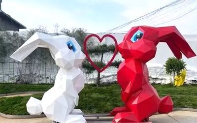 戶外園林不銹鋼雕塑除傳遞美,還需要考慮其耐用性,優選304、316以上型材,在造型上也需要避免尖銳棱角以防意外,還需要考慮到其反射,以免對行人車輛造成視覺干擾。