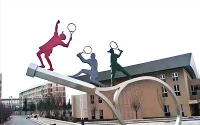 以體育運動為主題的不銹鋼景觀雕塑,包括但不限于舉重、乒乓球、體操、保齡球、冰壺、擊劍、射擊、高爾夫、拔河、排球、摔跤、雜技、標槍、棒球、游泳、滑冰、滑旱冰、滑板、滑雪、競走、籃球、網球、羽毛球、自行車、足球、跑步、跨欄、跳水、跳繩、跳遠、跳高等運動及其人物造型。